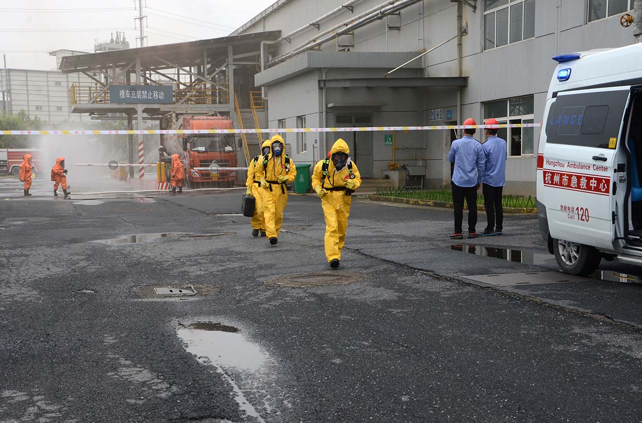 6月4日上午,杭州市舉行2021年全市大面積停電事件應(yīng)急聯(lián)合演練,集團(tuán)公司作為作為僅有的兩處向總指揮部進(jìn)行實(shí)況直播的現(xiàn)場處置點(diǎn)之一,參加了化工企業(yè)應(yīng)急處置環(huán)節(jié)的演練。本次聯(lián)合演練由市發(fā)改委、市應(yīng)急管理局聯(lián)合主辦,國網(wǎng)杭州供電公司承辦,市政府戴建平常務(wù)副市長參加聯(lián)合演練并擔(dān)任聯(lián)合演練總指揮,錢塘區(qū)應(yīng)急管理局副局長孔鐵林擔(dān)任集團(tuán)公司應(yīng)急處置演練現(xiàn)場總指揮。
